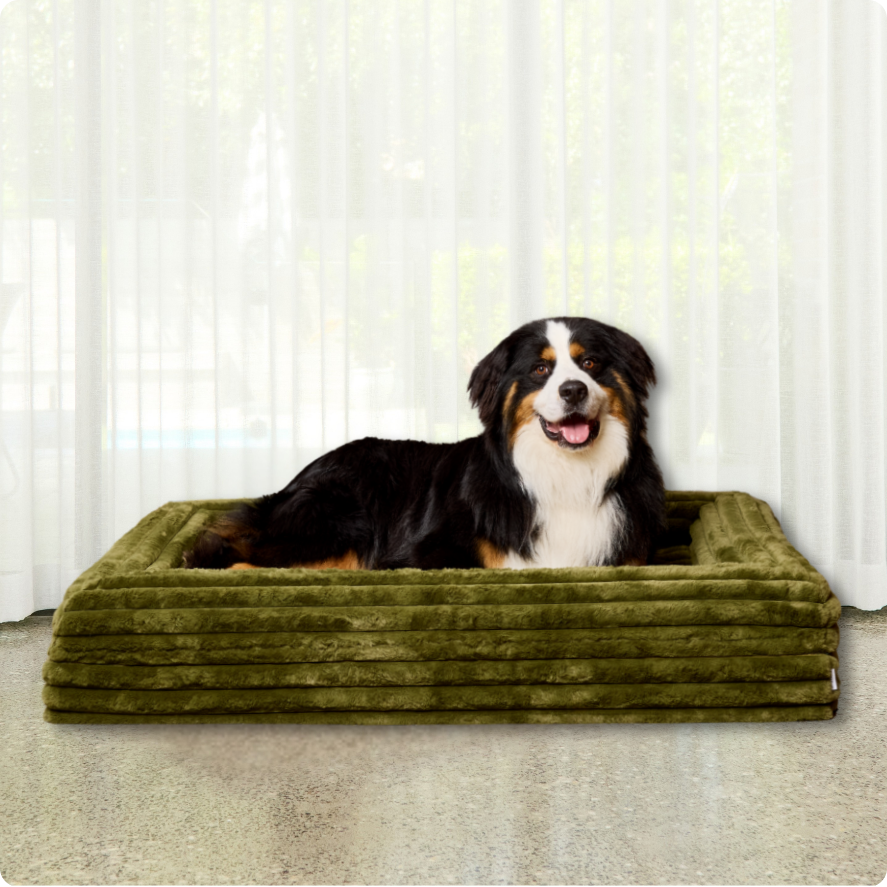 Memory Foam Dog Bed - Bouclé Forest Green