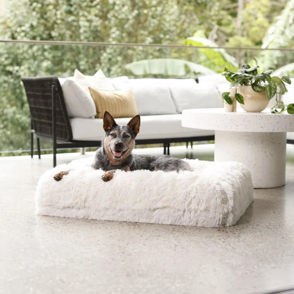 The Shag Quick Cover is soft, calming, and ultra-plush. Made to comfort anxious pups or any dog who loves a cosy place to curl up. No zips, no stress -just slide it on for an instant refresh.
