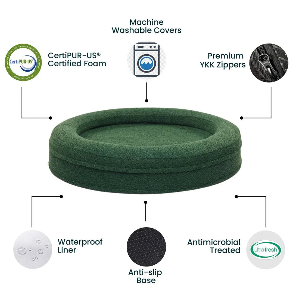 Round Memory Foam Dog Bed - Bouclé Forest Green