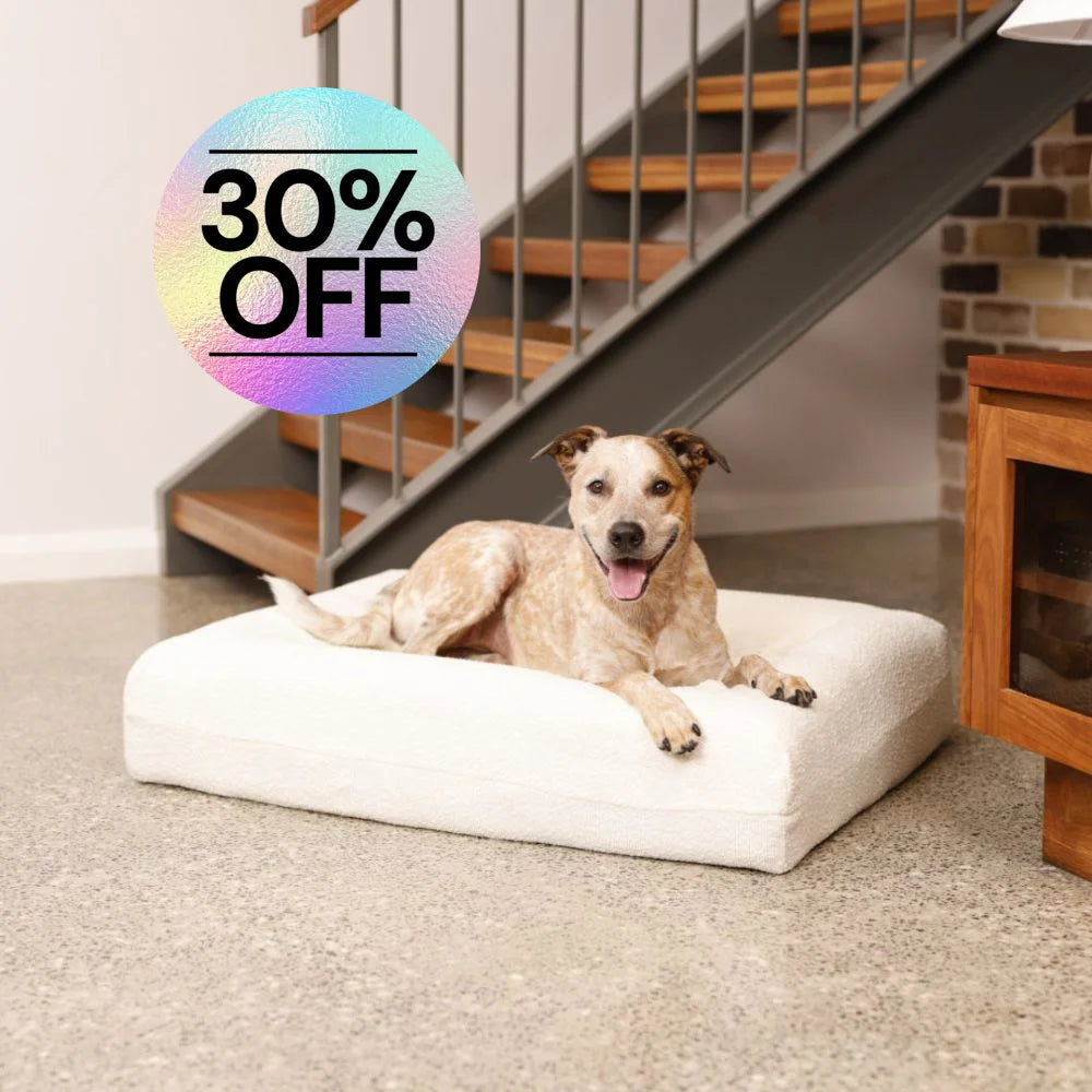 The Bouclé Quick Cover slips over your dog’s bed like a fitted sheet—no zips, no fuss. Switch up the look or add protection in seconds, all while keeping things soft, stylish, and easy to clean.