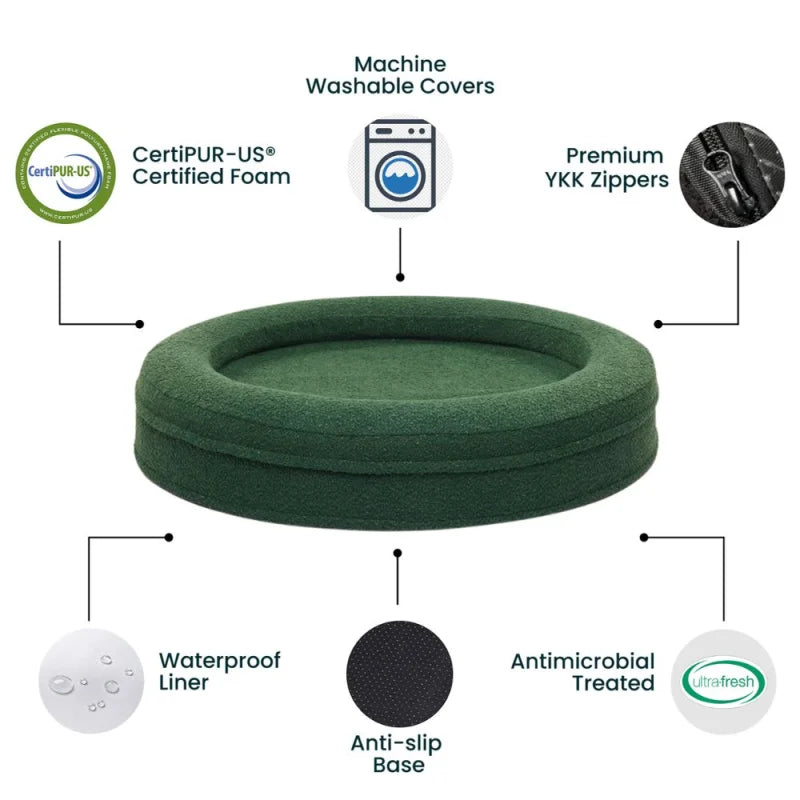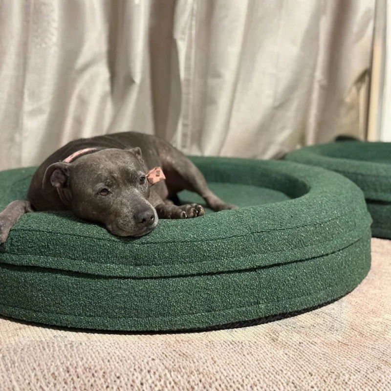 Round Memory Foam Dog Bed - Bouclé Forest Green